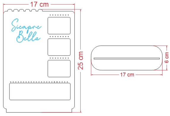 Fabricado en acrílico cristal de 3mm de grosor con base en MDF de 9mm.